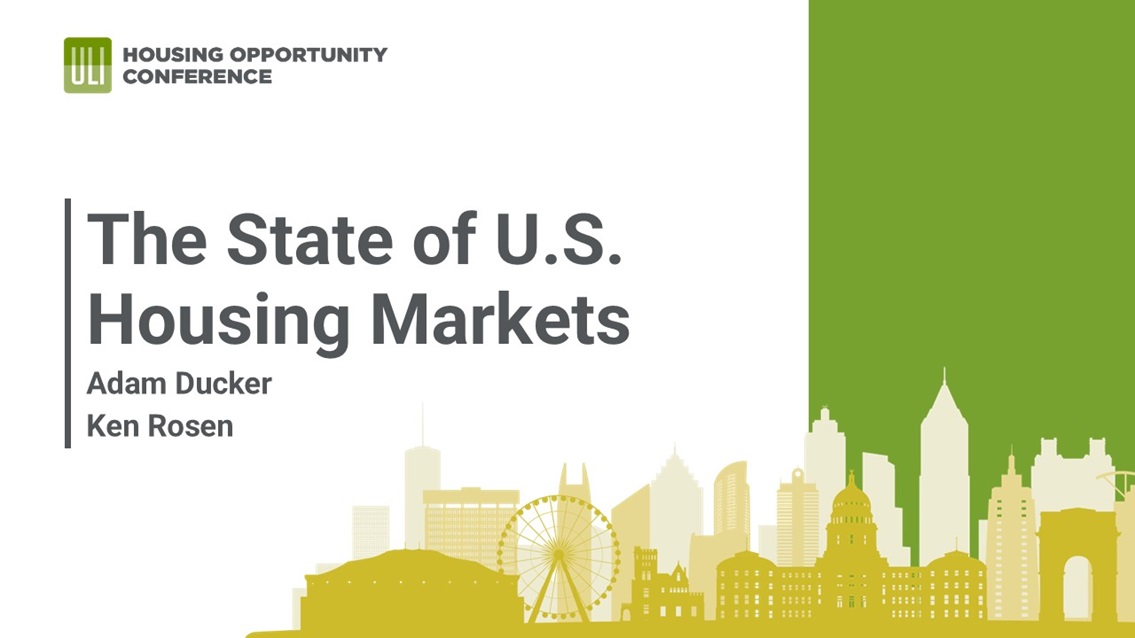 Resumen de la sesión: Each year, the Housing Opportunity Conference commences with a general session titled “The State of the U.S. Housing Markets.” Ken Rosen, Chairman of Rosen Consulting Group, and Adam Ducker, CEO of RCLCO provided this year’s keynote remarks. Mr. Rosen and Mr. Ducker presented national economic trends including: the political landscape and how the new Administration’s policies could affect government efficiency, tariffs and immigration; top of mind concerns such as inflation, taxes, interest rates; and analyses on employment and job growth, migration and population trends, construction costs, single and multifamily starts, and other industry data points; and shared macroeconomic scenarios, rate expectations; and other forecasts. Mr. Ducker focused on the findings from the latest ULI Home Attainability Index, including the three top takeaways for affordable housing in the U.S.